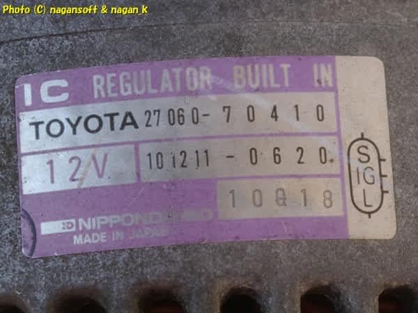 取り外したクラウンワゴン純正のオルタネータに記されている型番プレートです。