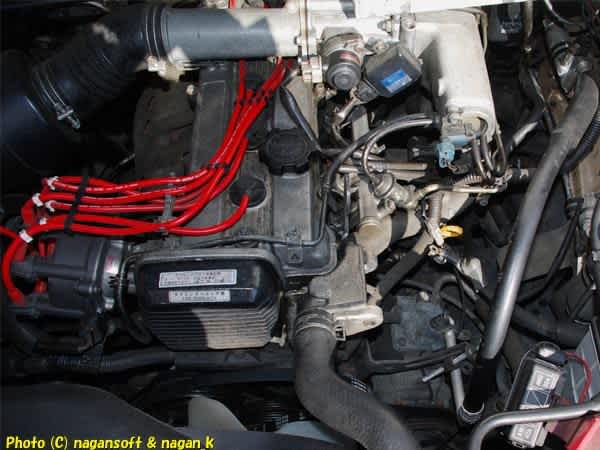 抜き取ったところから、エンジンになにやらセンサーが2個差し込まれている部分が見えます。