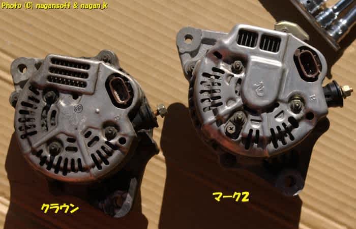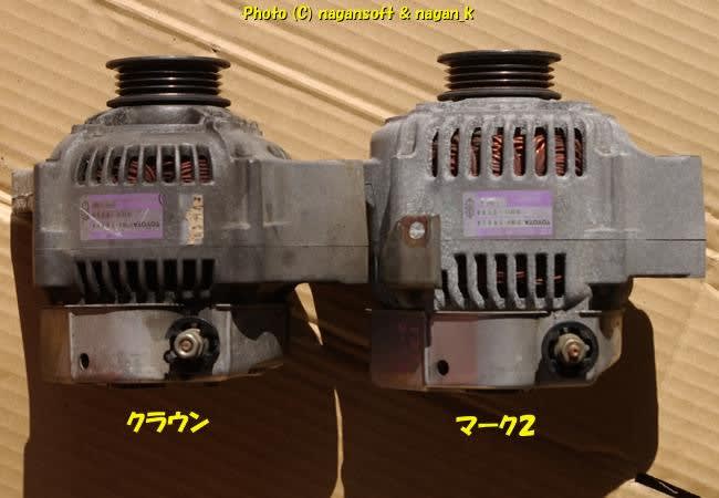 ちなみにクラウン純正ではなく、マーク2のオルタネータ(発電容量アップ)を採用しました。
