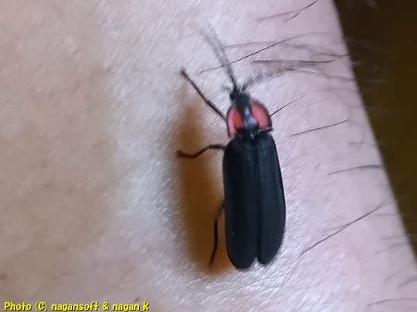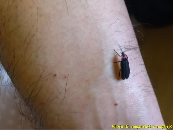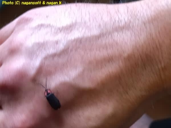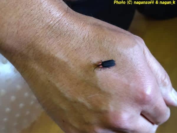 バンザイして迫ってくる黒い虫。あっ?こやつ甲虫だわ。まるで小さいゴキブリがバンザイして飛んで来る…。