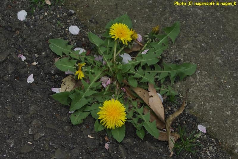 今年初のタンポポの花です。地べたにベッタリと貼りついているタイプです。