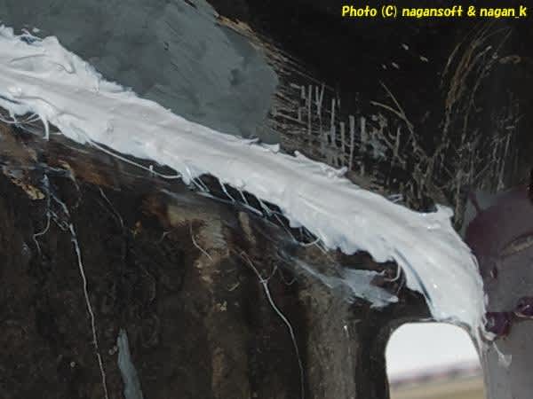 白いヌルヌルベッチャリなやつをパテヘラと人差し指に親指にて押し込みながらなすくりました。