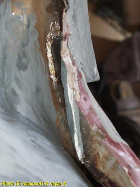 この部分にパッチ鉄板を貼り付けます。