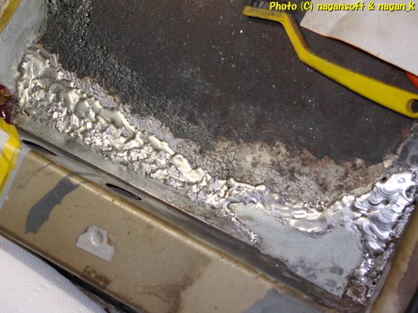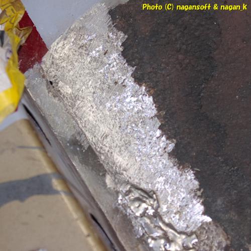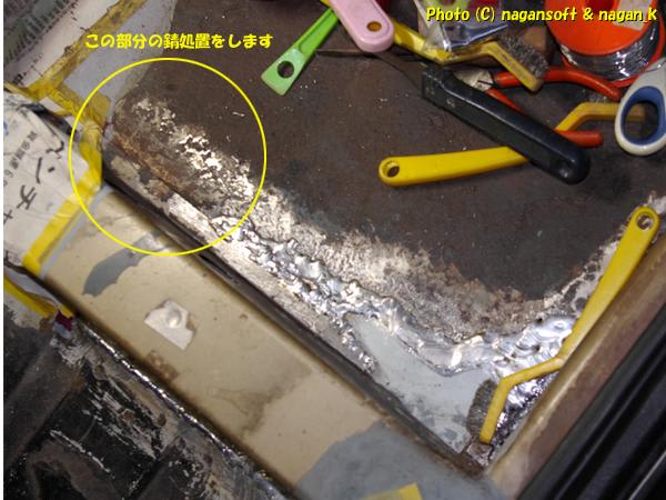 そこを塞いで梁を終わらせるのも手ですが、どうも梁とサイドシルとの接合部分が気に入らないのです。その接合部分を終了してから、梁の袋内部を切開未処置部分からジンクスプレーを入れたいと思っているのです。