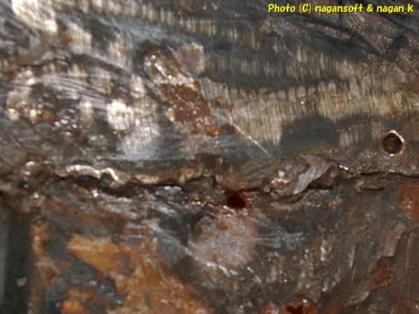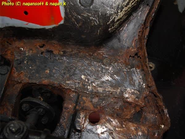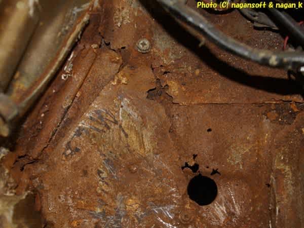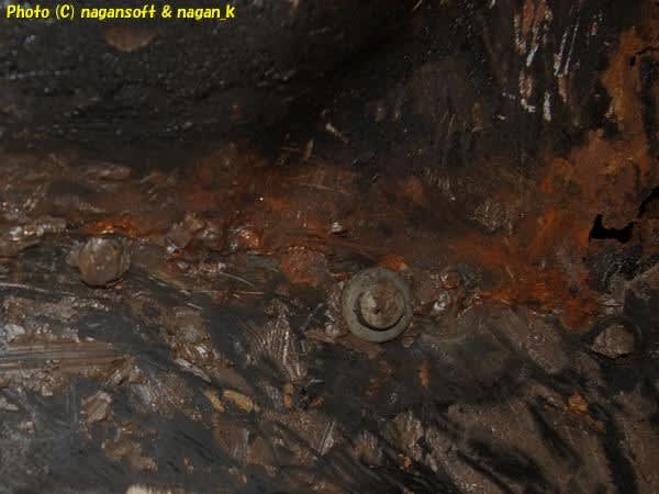おそらく錆屑鉄板を切除せずに、錆屑を多い尽くす綺麗な鉄板を上から1枚、裏から1枚被せて隠蔽しようとしたのではないだろうか?