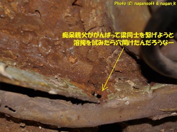 溶接失敗でオリジナルの梁に穴を開けてました。