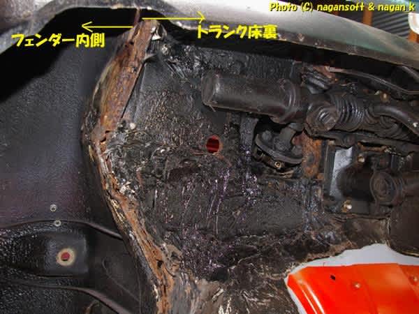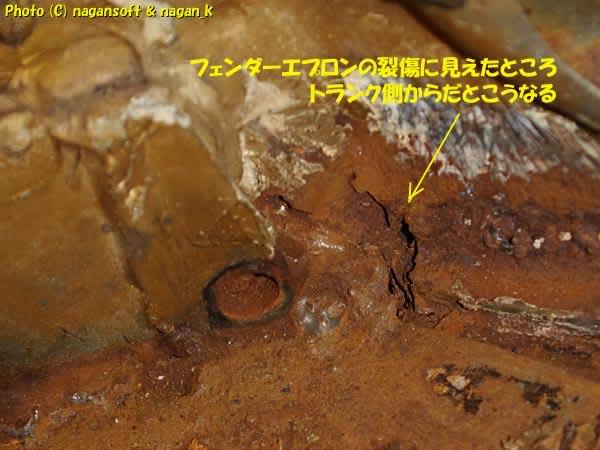 うーんうーん。フェンダーエプロンの裂傷のように見えていたところです。