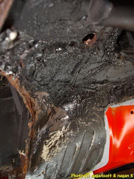 さらに、本当に錆屑でどうしようもないと思ったところは溶接をしないでコーキングでそのまま埋め込んでいる。