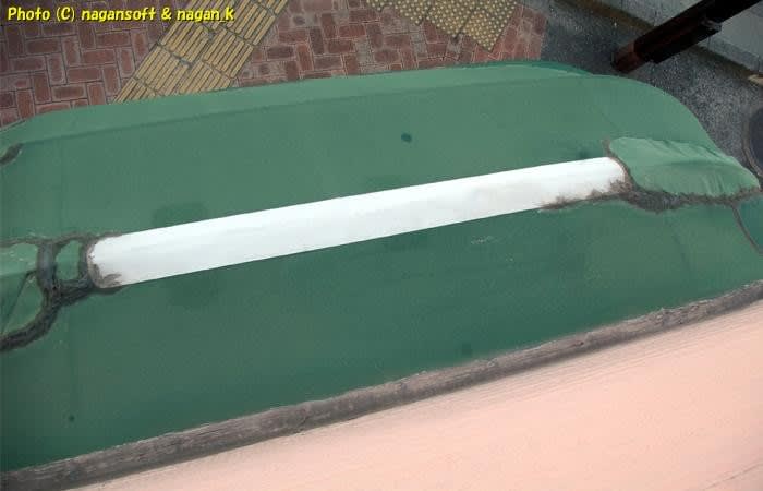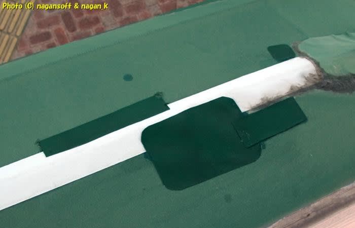 今回は道路に脚立を立てるのではなく2階の窓から身を乗り出して落ちそうになりながらパッチを貼ります。