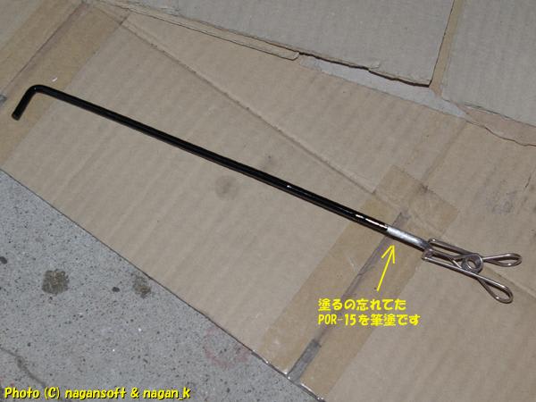 ということで、残りの部分にPOR-15を塗りまして、また棚の縁にぶら下げました。