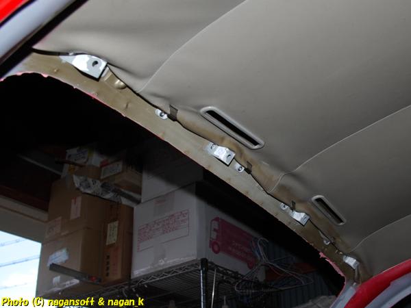 まずはガチャックで天井内貼り生地を挟み込み固定できるかのテストです。