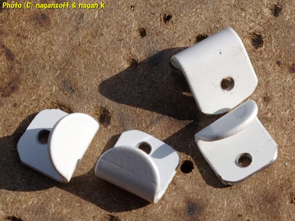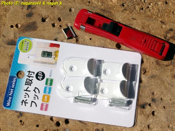 100円ショップで見つけたネットを固定する金具。それと本業で書類仕事するときに大活躍文具のガチャックです。
