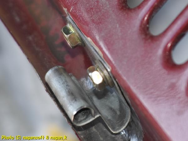 で、こんなにボルト頭が飛び出したら、エンジンボンフードの縁折り返しが入り込むユトリはないですね。