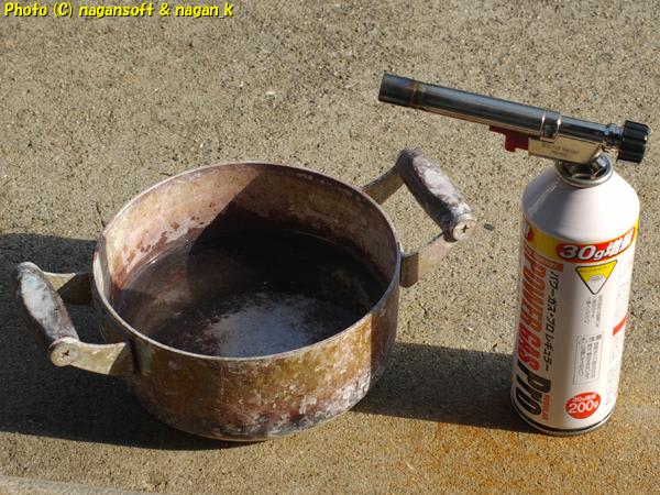 バーナーであぶって色が変わり始めたら、水にザフンです。