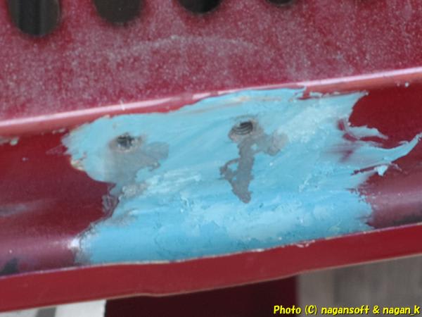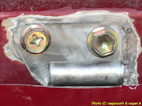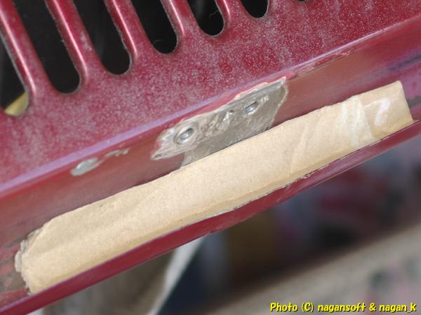 さて、こののま放置するとまた錆ますねー。車体側の鉄素材はこれでいい(ハンダの巣穴があるけど)ということで、パテをなすくって錆びないようにしました。
