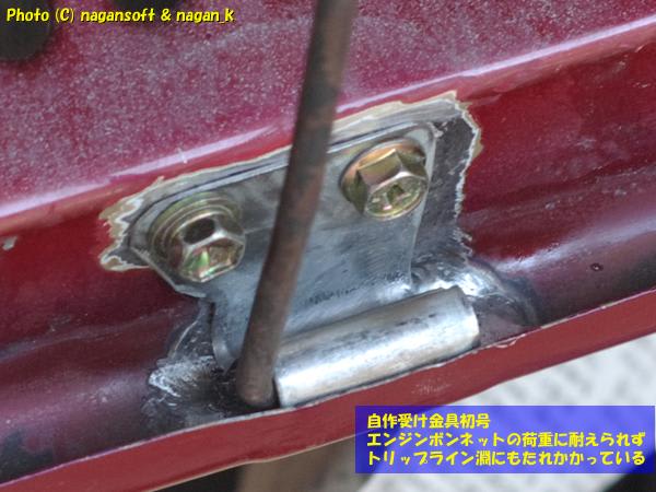 でもねー、エンジンフードから手を離した瞬間に、金具がおじきしました。ドリップラインの縁に寄りかかりました。