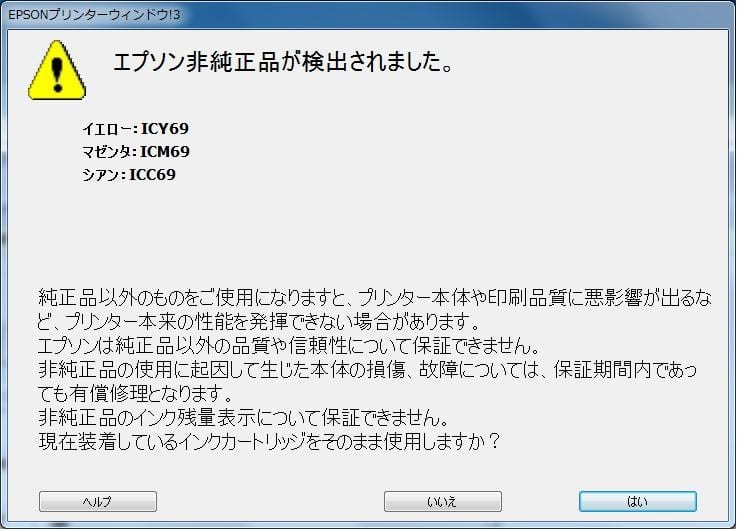 黒インクだけは社外品として認識されないのです。社外品の黒インクなのにですよ。