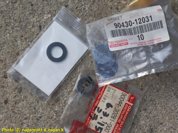 もちろんドレンボルトワッシャーも新品を….。って余剰分も少なくなったなー。またヤフオクとかで処分されているやつを見つけておこう。