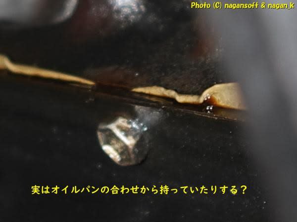 エンジン右側のオイルパンのところにも滲みの気配があるのよね。
