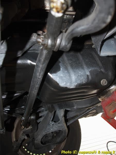 いやーオイル滲みがさー、始まっています。(2ヶ月前のタイヤローテーションの時にオイル滲みを確認してます)