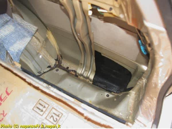 応急タイヤを取り出して、そのスペース下に雨水が侵入していたりしないか確認。