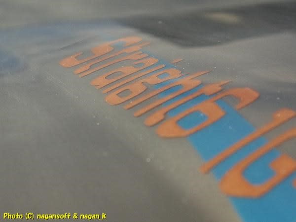 落書きがしっかりクリヤー層の下に沈み込みました。斜めからみたら水槽状態です。