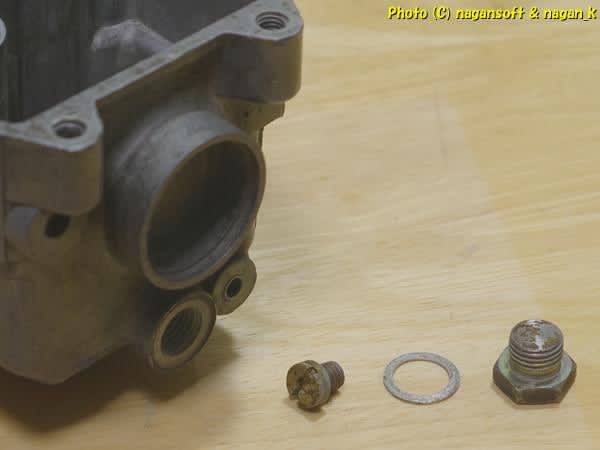 「キャブレータ下のドレンボルトと、その奥にあるメインジェットは、底にあるので緑錆リスクあり。分解して点検掃除はしておいたほうがいい」というアドバイスをもらいました。