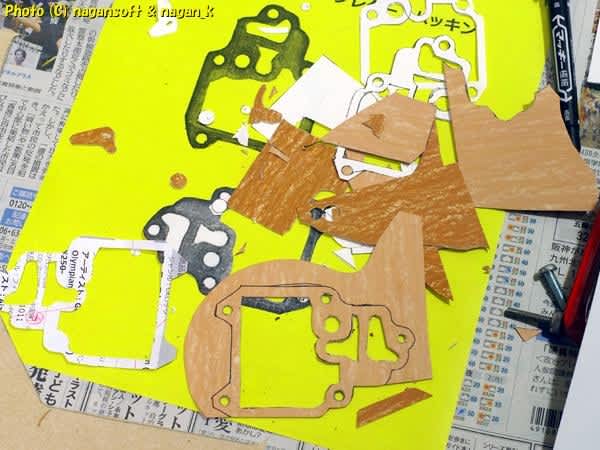 ガスケットシートは以前にエンジン回りの各種ガスケットを切りだした残り端材を用いてますよ。