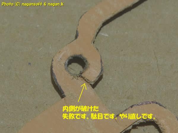 ポンチは駄目でもカッターの刃先を当ててガスケットシートを回しながら切り出したらボルト通し穴なんて簡単さ、と思っていたら….