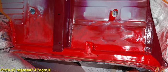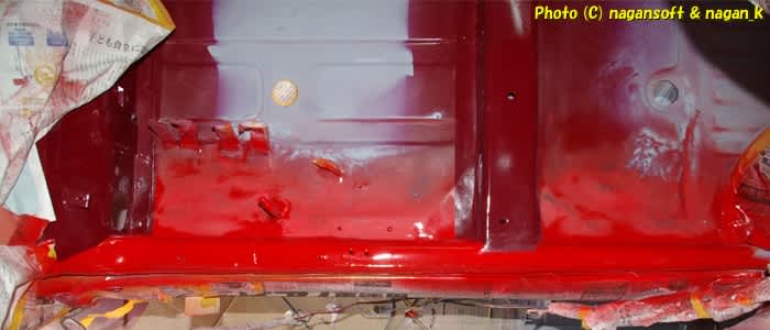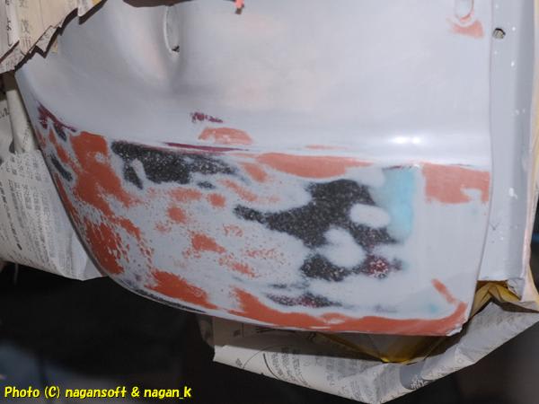 右リヤフェンダー下端の研ぎ出し完了しました。