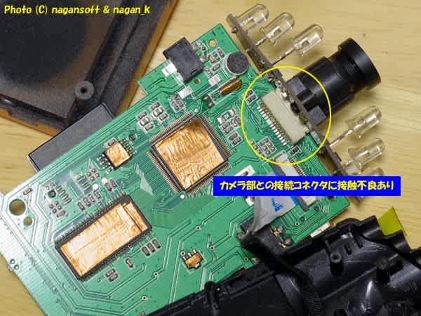 すると、カメラ部とマザー部を接続するコネクタが緩んでいるらしく、微妙な角度位置でやっとカメラがつながるといった感じでした。
