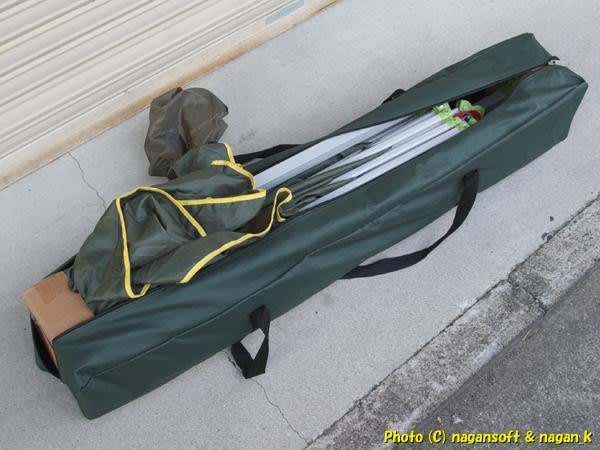 このタープテントはフリーマーケット出店するときの道具なんだけど、お金に困っているからねー、次にフリーマーケットに行くときには商品になっているかもしれません。