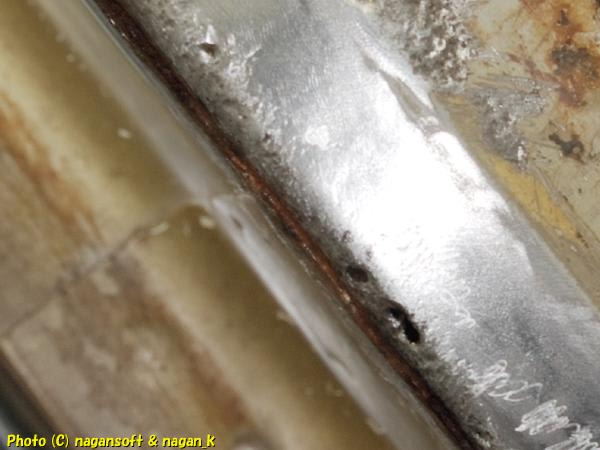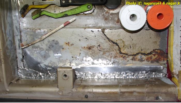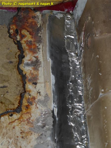 左後席床とサイドシルとの接続部分にハンダをじっくりと流しました。