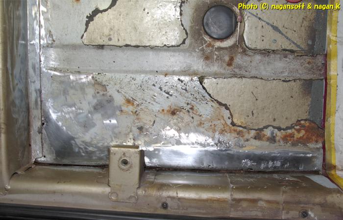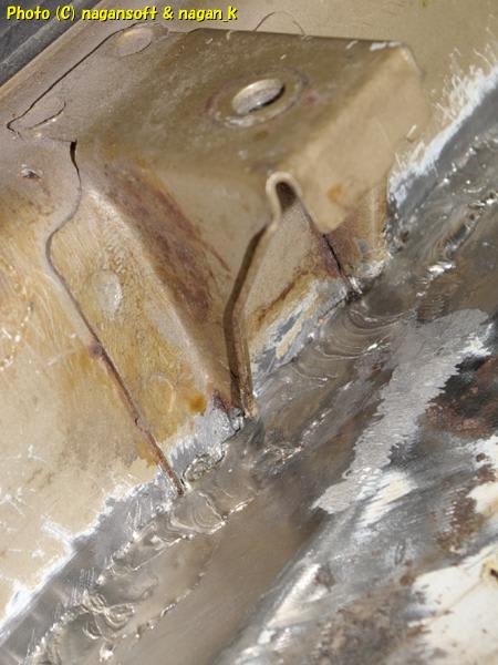 昨日の続きで、左後席フロアとサイドシルとの接続部分(サイドシル立ち上がり部分)を錆取りです。
