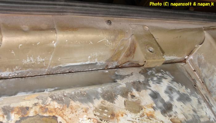 これで、左後席とサイドシル接続部分のサビ取り終了になります。