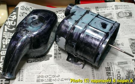 昨日にエアクリーナーケースへ塗った錆び転換剤は、こんな状態になりました。
