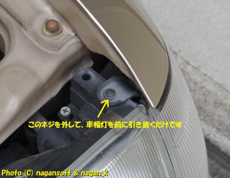 昨晩に発見した、左前車幅灯の電球交換をしました。