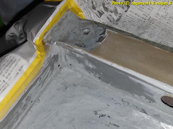 ともかく、床と、サイドシルへの立ち上がり部分をサンドペーパーで研磨しました。