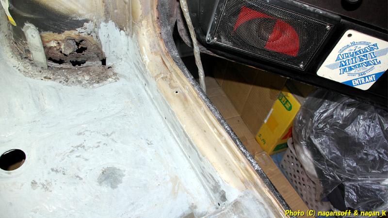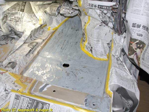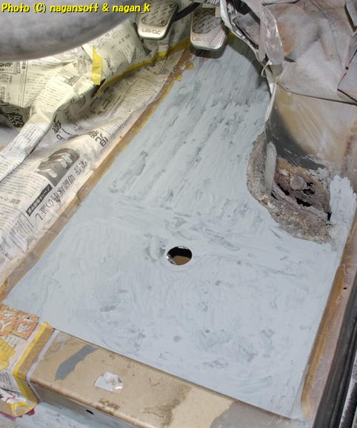 いままでの運転席床の作業は、サビ穴をふさぐ仕事でした。つまり、床の制作でした。