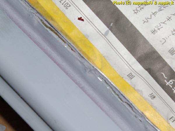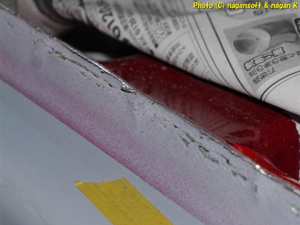 合わせリップ部分を削りましたので、スチール合わせ部分の隙間が露出しました。