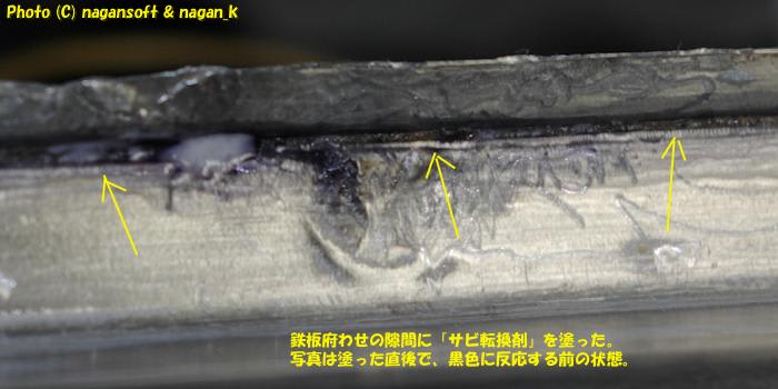サイドシル上側の面のサビは滅しましたのでジンクスプレーを吹きたいのですが、サビ転換剤を塗ったばかりなので別の塗料を上から吹きかけることは避けたいのです。