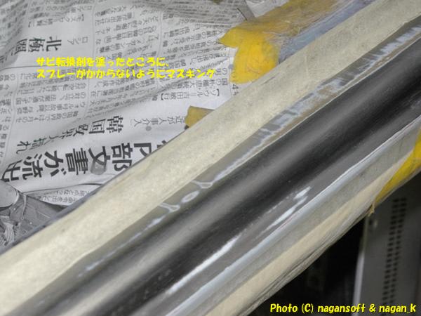 と、なると、サビ転換剤を塗ったところをお手軽にマスキングです。
