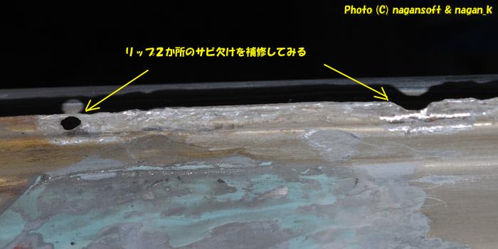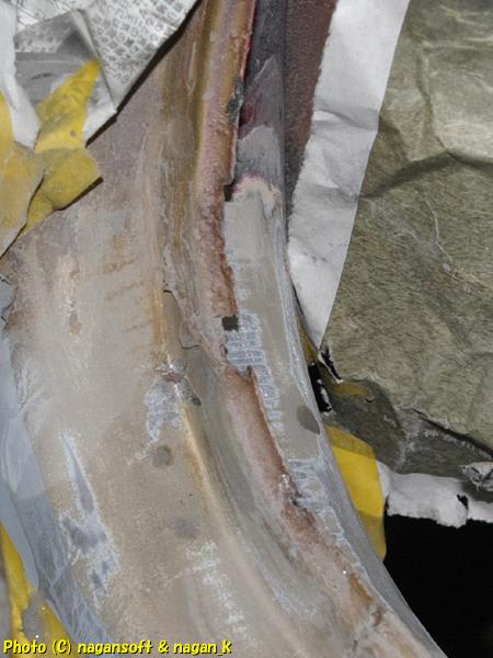リューターで錆びをほじくったのですが、どうしても合わせ隙間奥のサビは削れません。