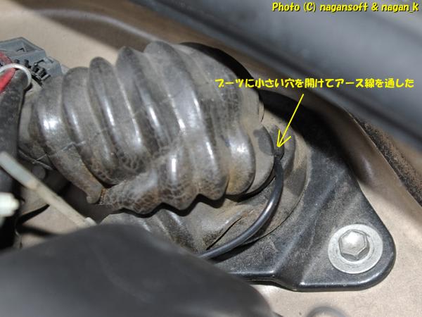 やりたくないけどなー。ブーツに小さい穴を開けてケーブルを通しました。