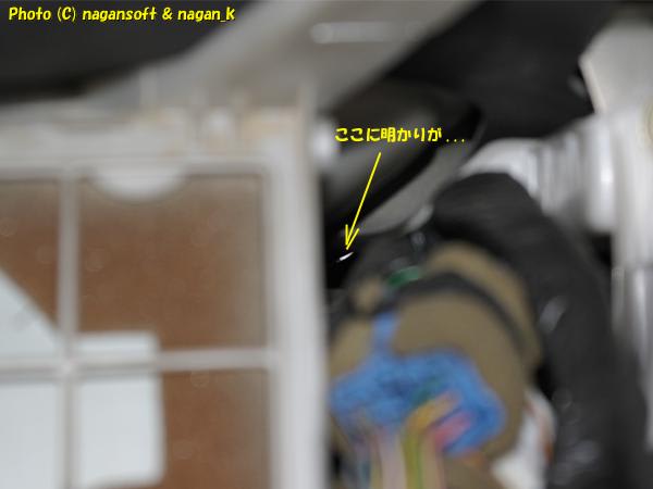 ボンネット側のハーネス引き込みブラケットを取り外してみて中を確認します。
