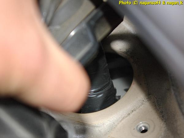 ブラケットの裏側はグロメットのようなゴムパッキンが仕込まれてます。つまり、間にケーブルを挟み込んで引き込む作戦はケーブルに無理な力をかけることになり、後々に断線の恐れあり。