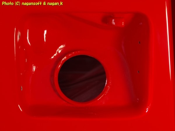 ガソリンタンクが付く空間の塗装肌を確認しまして、塗装ミストのザラツキがを見つけてはコンパウンドで研磨です。
