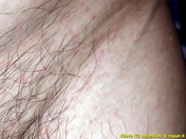 私の目では、マラセチア毛包炎なのか?類乾癬による毛根炎症なのか?判断に悩むところなのよ。
