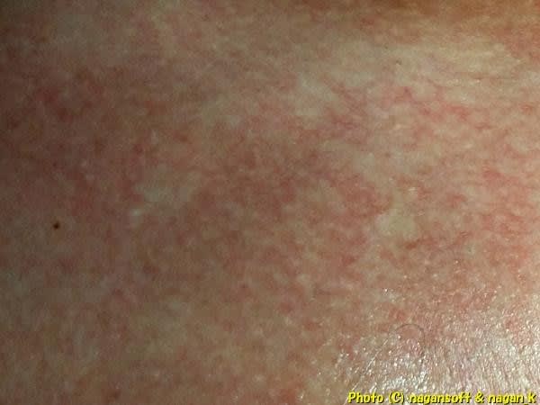 あいかわらずの小さい発疹は出続けています。どこの写真やねんってのは突っ込まないように。
