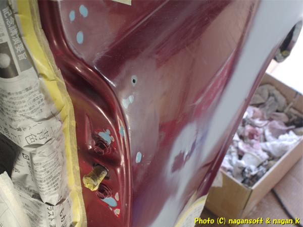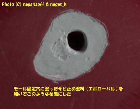 サイドモール取り付け穴に塗ったサビ止め塗料(エポローバル)も砥ぎました。